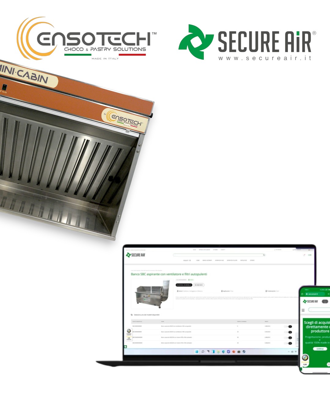 Ensotech™ amplia i propri canali di distribuzione e annuncia una nuova collaborazione: la nostra Mini Cabin, insieme ai suoi ricambi ed accessori originali, è da oggi disponibile su Secureair®: eCommerce specializzato nei prodotti di aspirazione e filtrazione professionale.